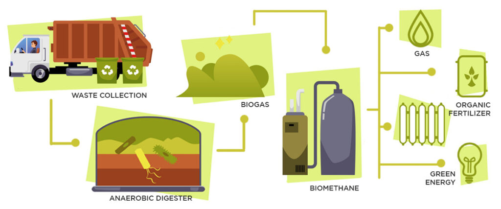 One of our core solutions is the conversion of organic waste into Bio-Compressed Natural Gas (Bio-CNG). This green energy source is a sustainable alternative to fossil fuels and contributes to reducing greenhouse gas emissions. Bio-CNG can be used for various applications, including transportation and industrial processes.
